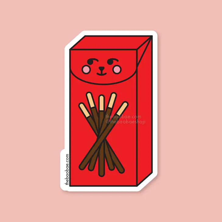 Pocky is loved by all, but which flavor is the best?! Pick one of three: strawberry, matcha, or chocolate. These flavor-coated biscuit sticks are the perfect snack to share with friends, so be sure to share these stickers with all your pocky pals! 1.77" x 3" weatherproof, waterproof vinyl sticker.